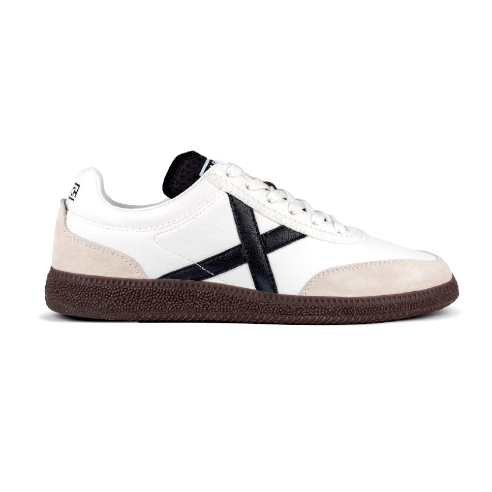 Estas zapatillas Munich son un modelo icónico que combina un diseño clásico con un toque moderno y versátil. Confeccionadas en negro intenso, presentan el distintivo logotipo en forma de X en blanco en los laterales, resaltando su estilo elegante y atemporal.