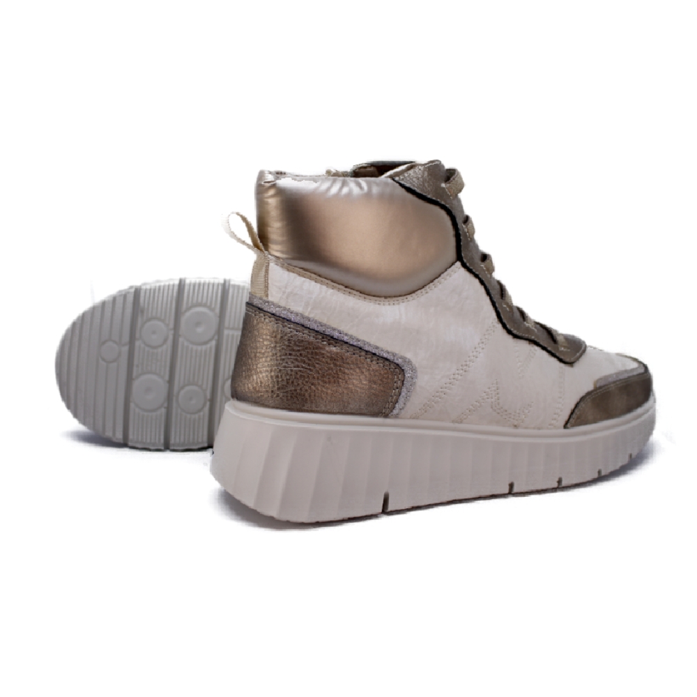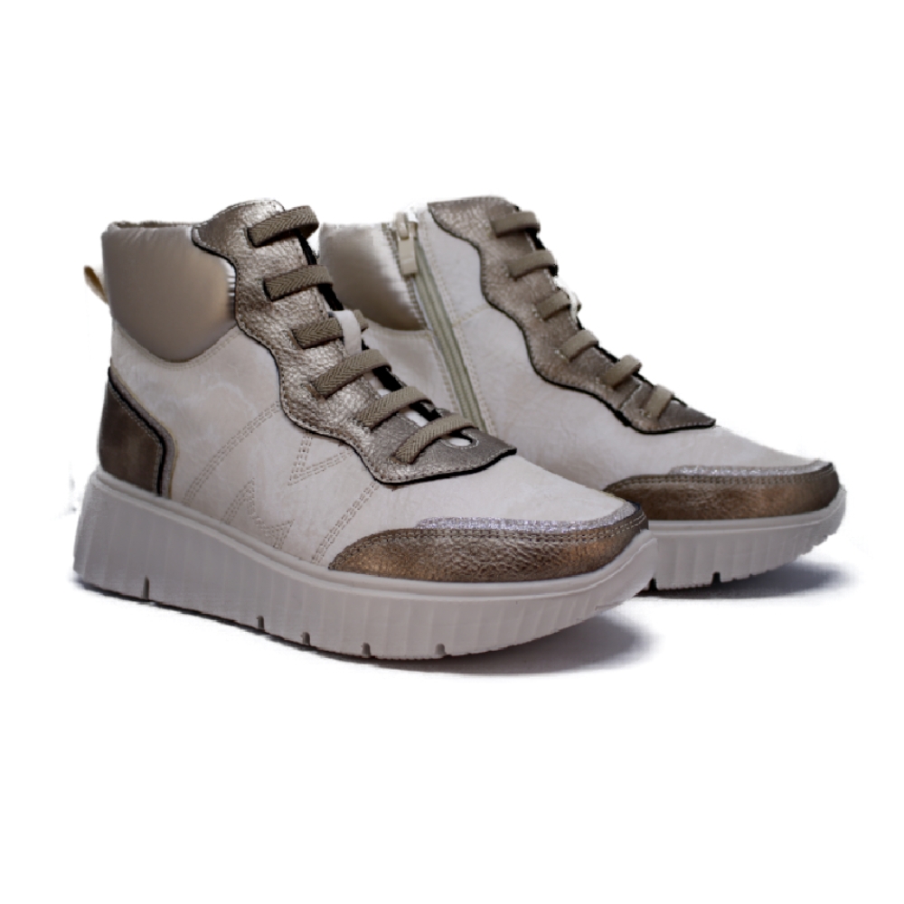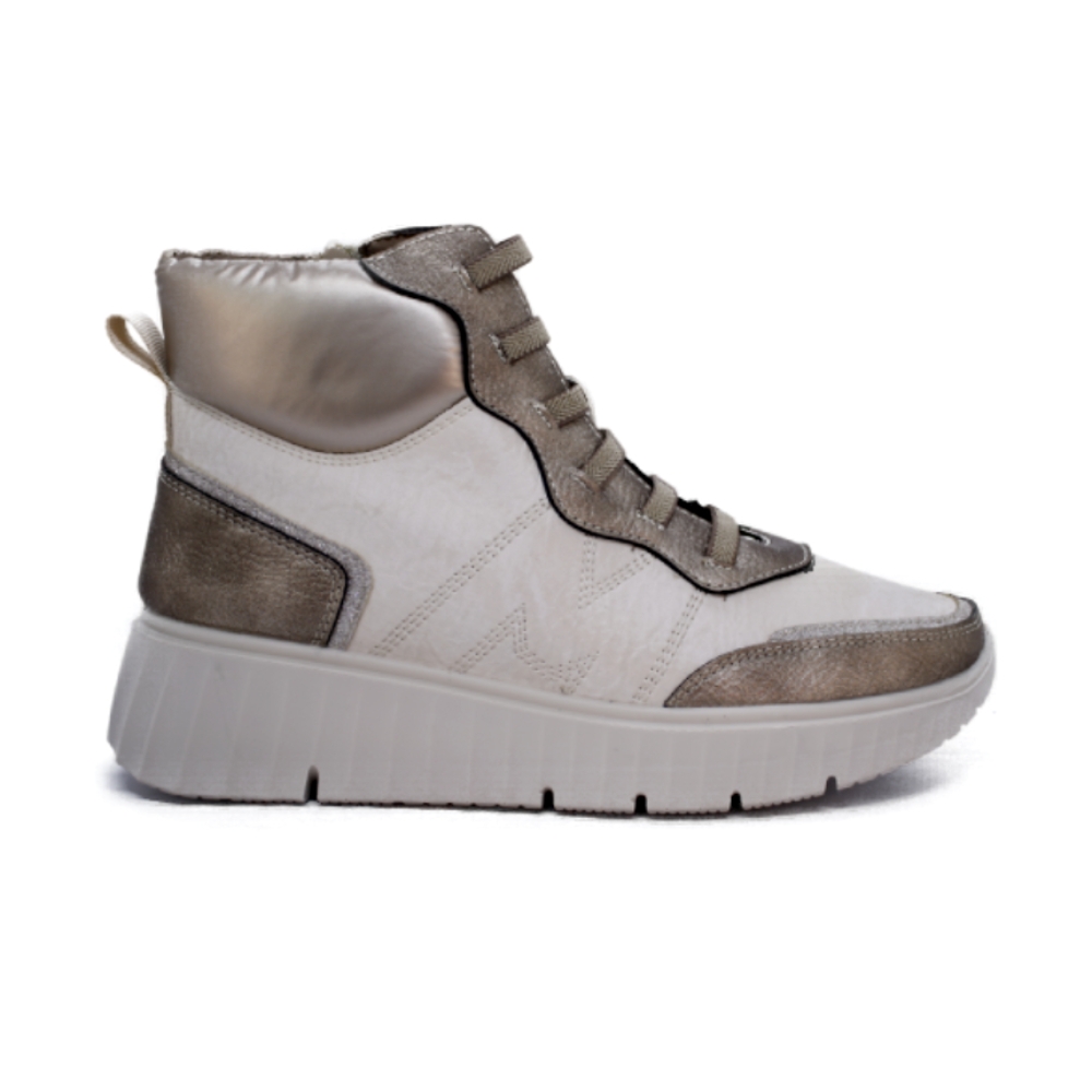 Bota casual y confortable realizada en  en suave material sintético  que se ajusta mediante cordones y cremallera interna. Con plantilla extraíble y suave cuña de 4 cm. Se convertira en tu favorito este invierno.
