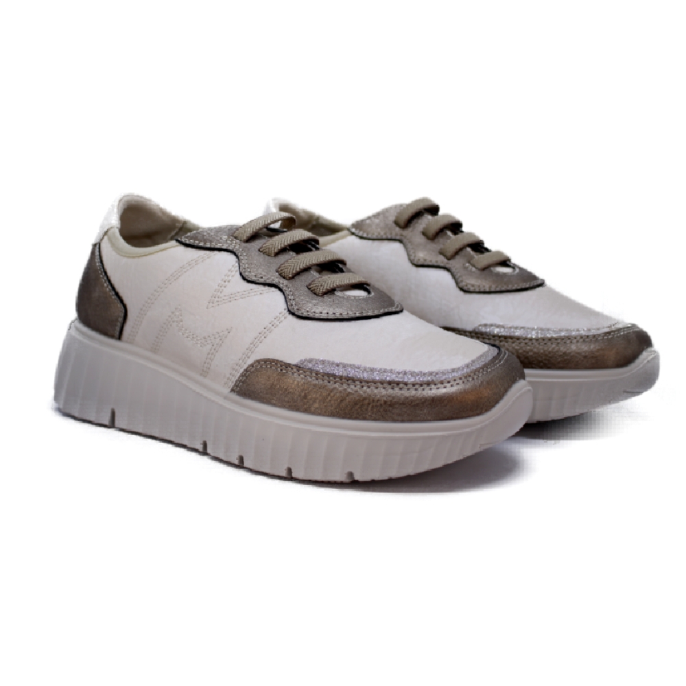 Zapatillas deportivas de mujer. Estas Sneakers de cuña de unos 3,5cm, están confeccionadas en PU / Nylon y tienen un cierre elástico. Plantilla extraible con tecnología SOFTGEL y detalle PU Leather en puntera y lengueta.
