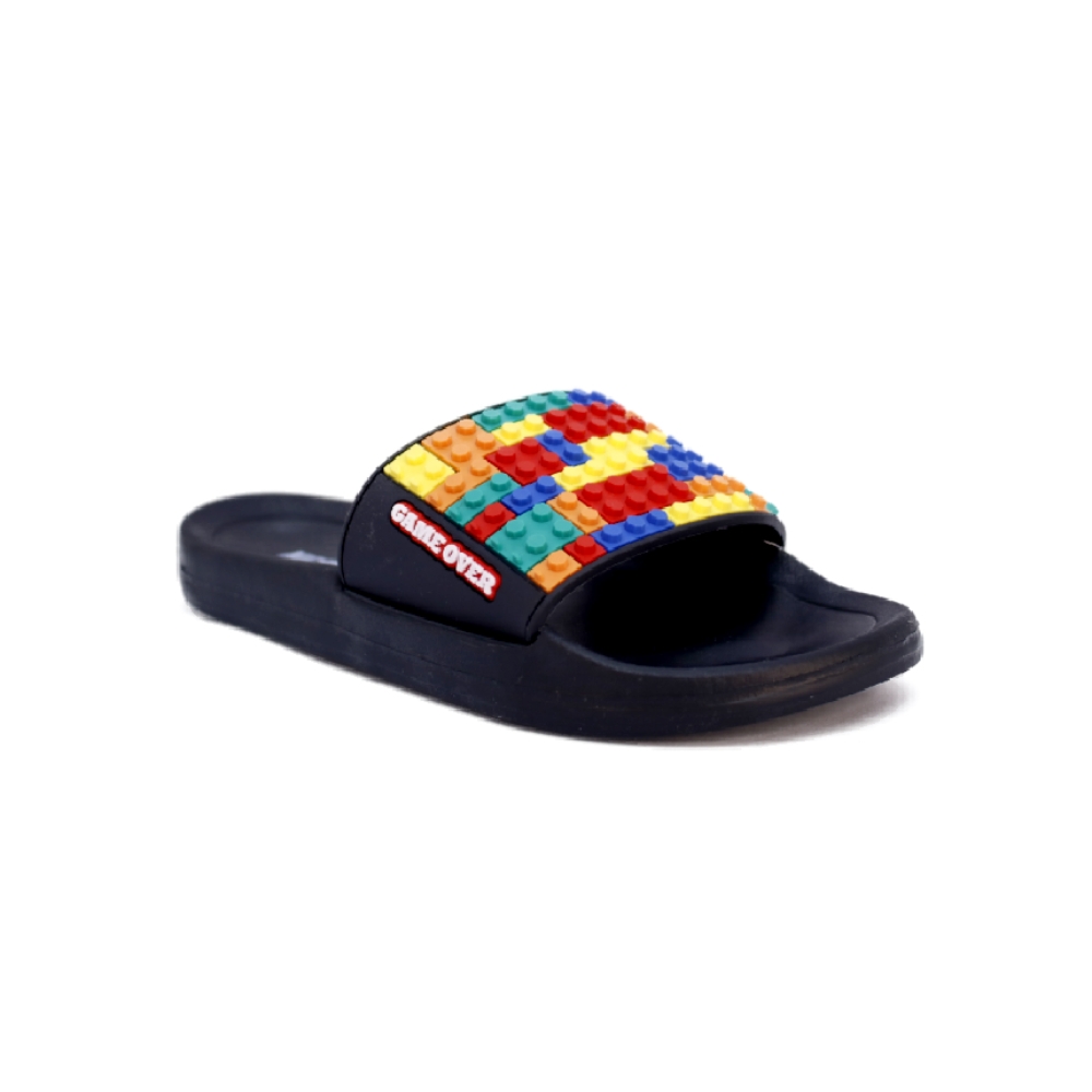 ¡Diversión a cada paso! Estas chanclas de piscina para niño combinan comodidad y diseño original con un toque creativo que encanta a los más pequeños. Su tira presenta un estampado en relieve que simula piezas de bloques de construcción multicolor, aportando un estilo único y lleno de personalidad.