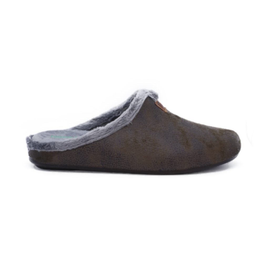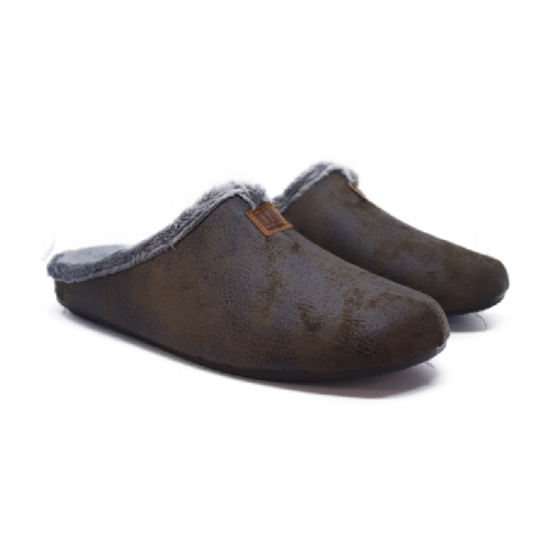 Zapatilla de estar en casa de hombre abierta de talón tipo zueco. Está hecha en suapel, un material cálido y confortable. Tiene un pequeño pico en la zona superior y esto no es solo decorativo, sirve para que entre mejor el empeine. Este modelo tiene una plantilla interior muy blanda que proporciona una pisada muy confortable. Esta plantilla es extraíble, esto quiere decir que se puede quitar y poner otra en su lugar.