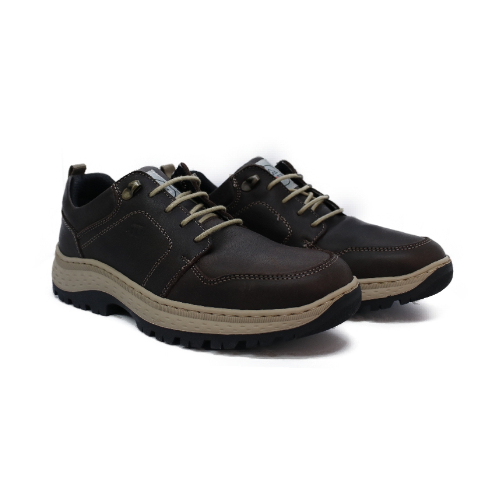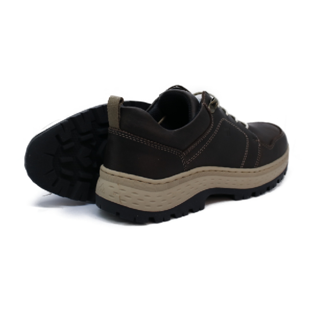 Zapato deportivo trekking de piel en color marrón combinado de la marca Notton.Suela dentada vulcanizada de goma natural.Plantilla ártico.Cierre mediante cordones.