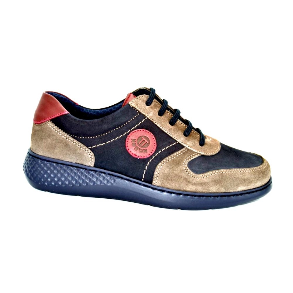 Zapato deportivo Notton en color azul y marrón para hombre. Con estilo joven y muy casual le darás un toque sport a todos tus looks de esta temporada, te resultará muy cómodo ya que se adapta a la perfección al pie y muy ligero gracias a su suela super light. Lleva plantilla extraíble