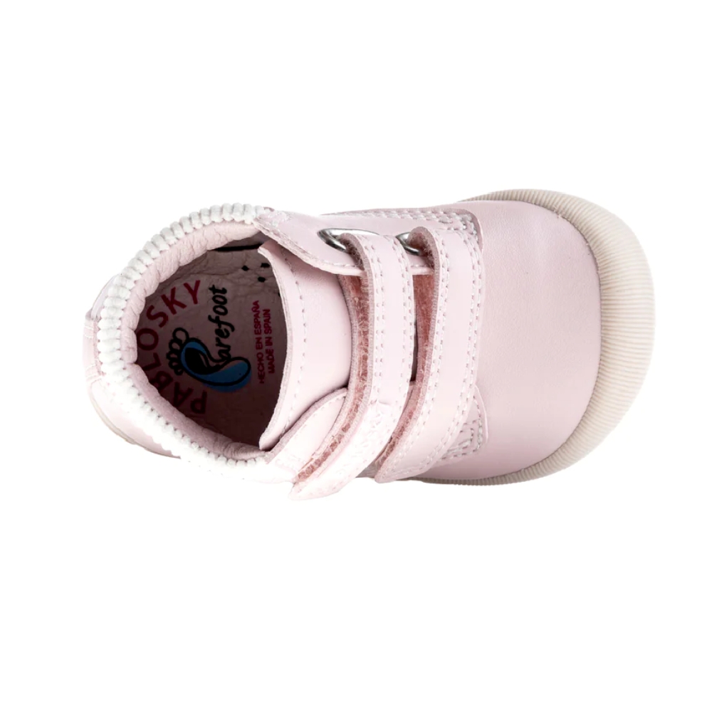 El cierre adherente asegura un ajuste sencillo y firme, pensado para la comodidad de padres y peques. Un calzado avalado por podólogos y fabricado en España, ideal para cuidar y acompañar cada paso de tu bebé.