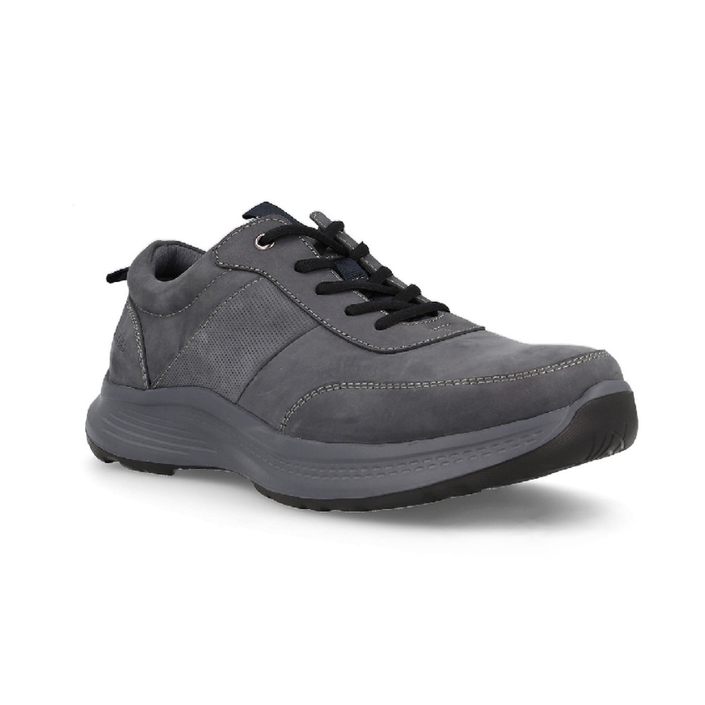 Este es un zapato casual para hombre, confeccionado en piel nobuk de alta calidad en un tono gris oscuro. Su diseño combina elegancia y funcionalidad, perfecto para un uso diario. Presenta las siguientes características destacadas: