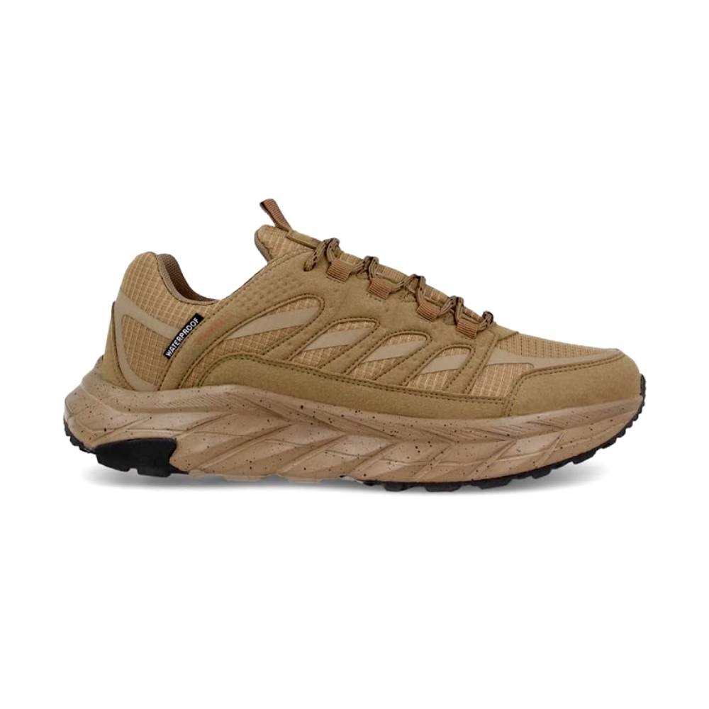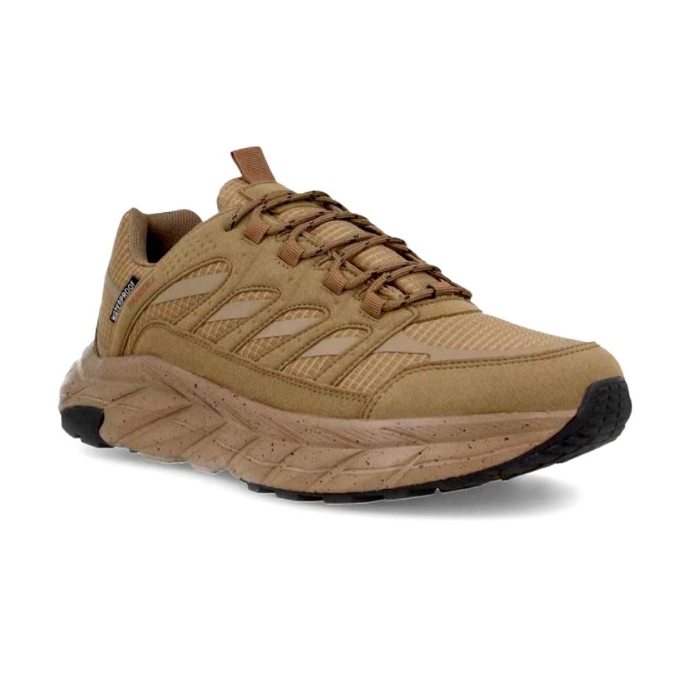 Las zapatillas de trekking Insua para hombre en marrón mantiene la EVA + TPR para una pisada amortiguada y con agarre, el corte textil + PU para transpiración y resistencia, y la membrana PARETEX para seguir a gusto aunque caiga un chaparrón.  Llévatelas hoy. Incluyen camiseta técnica de regalo.