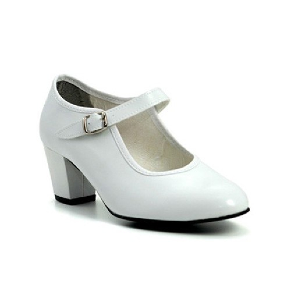 Zapatos para bailar sevillanas o flamenco. Estos Zapatos de color blanco con tacón fabricados en España