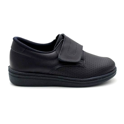 Zapatos sanitarios cerrados de hombre en piel perforada, con cierre de Tira Adhesiva .