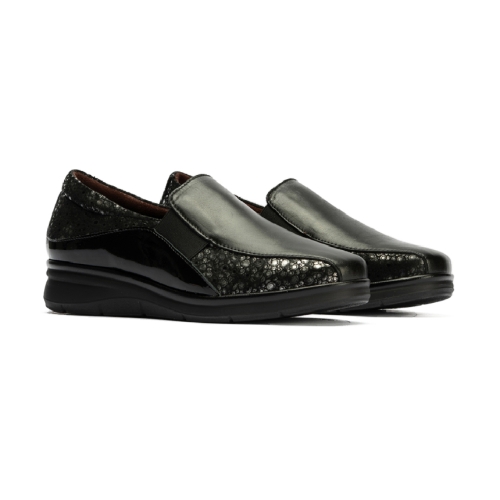 Fabricado con materiales de alta calidad, combina la suavidad de la piel con la flexibilidad de la licra, garantizando que el zapato se adapte a la perfección a la forma de cualquier pie, incluso los más anchos o sensibles. La plantilla es extraíble, lo que te permite usar tu propia plantilla ortopédica si lo necesitas.