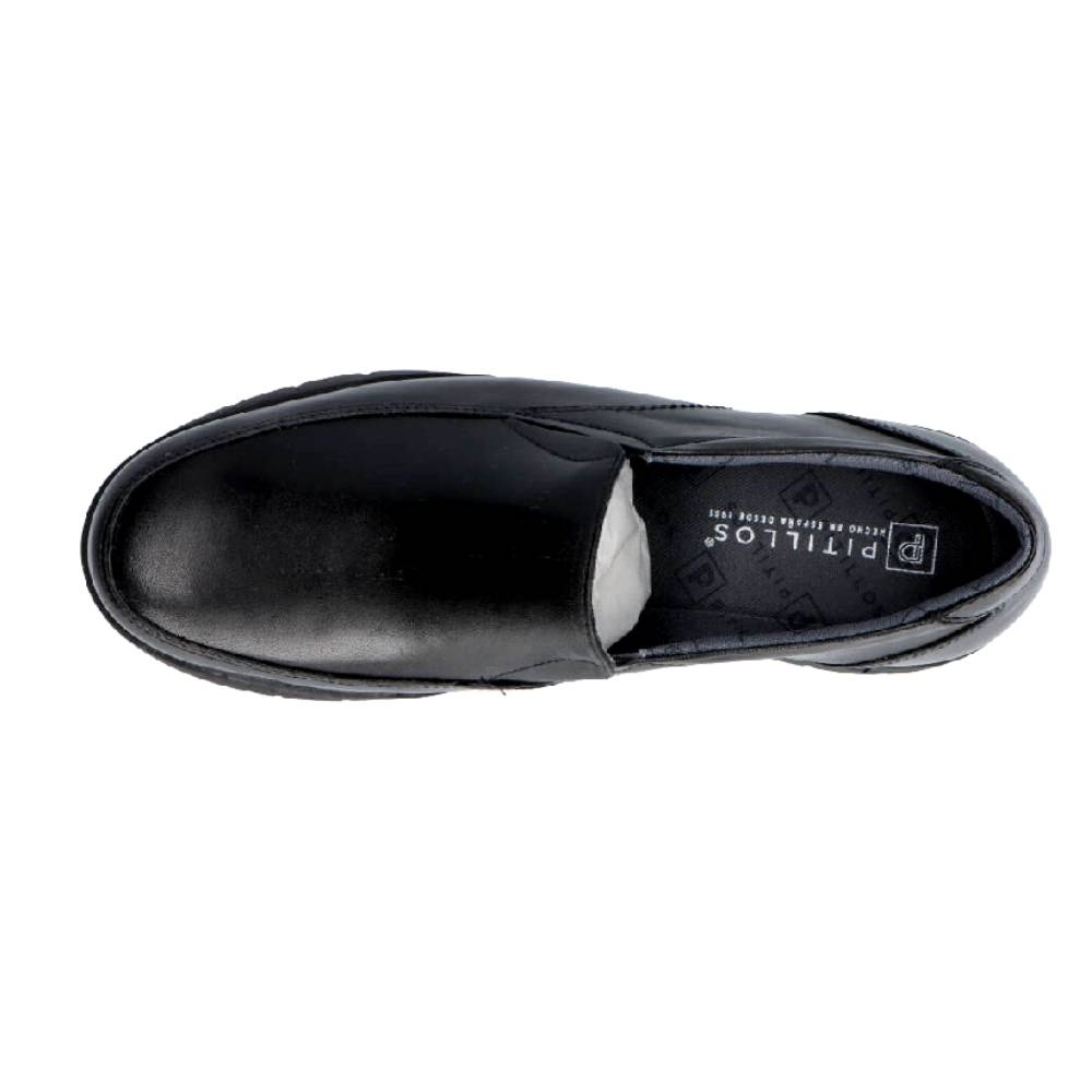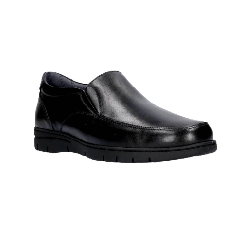 Zapato mocasín de hombre, con elásticos laterales. Modelo cómodo fabricado en piel napa de primera calidad, con suela de goma flexible. Plantilla acolchada y extraíble. Color negro. Ideales para el trabajo y tu día a día. Hecho en España.