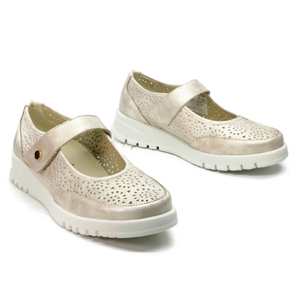 Descubre el equilibrio perfecto entre la sobriedad del tono crema y la sofisticación del acabado oro con el modelo 20300 de Pitillos. Este zapato tipo Mercedes ha sido diseñado para la mujer que busca un calzado funcional, ligero y con un diseño que ilumina cualquier conjunto primaveral o de verano.