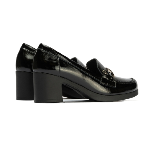 Este zapato de Pitillos combina elegancia y comodidad en un diseño atemporal. Fabricado en piel con acabado charol negro, resulta versátil para looks diarios y ocasiones especiales. El adorno metálico en la pala aporta un detalle moderno y sofisticado que realza su estilo clásico.