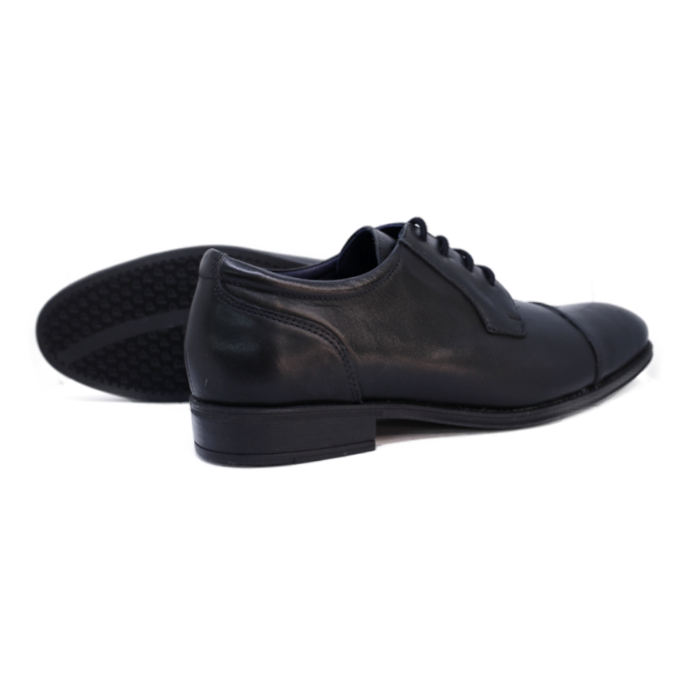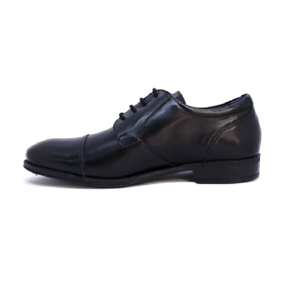 Fabricado en piel de primera calidad con un acabado negro profundo, es la elección ideal tanto para ceremonias como para jornadas laborales intensas que requieren una presencia impecable.