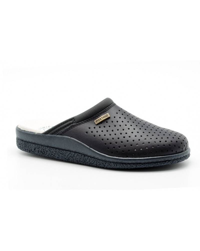 POSTIGO - Zueco Sanitario de Piel con Suela de caucho de hombre y señora en piel perforada,