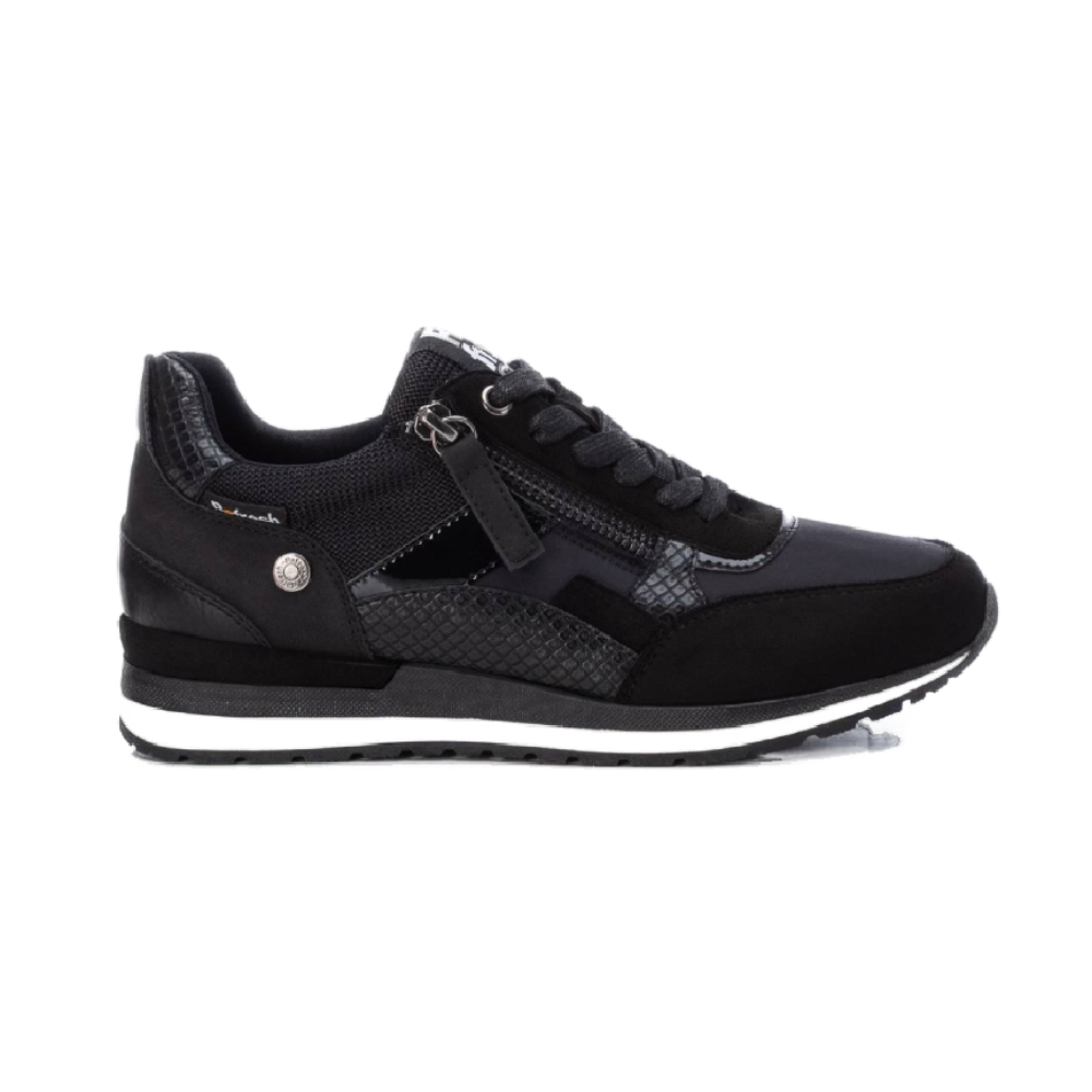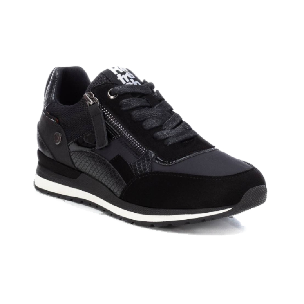 Zapatilla de mujer, de la marca Refresh. Fabricada en diferentes tejidos combinado con material que imita la piel. Cordones ajustables y cremallera lateral para una puesta más rápida. Suela de goma antideslizante. Una zapatilla perfecta para arriesgar en tus looks de esta temporada. Este modelo ha obtenido el certificado vegano por la organización mundial PETA (Organización de los derechos de los animales).