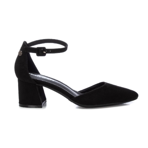 Zapato de mujer, de la marca Refresh. Fabricado en suave antelina. Elegante punta afilada y pulsera al tobillo con cierre de hebilla. Tacón ancho de 6 cm forrado en el mismo material. Suela de goma antideslizante. Este modelo ha obtenido el certificado vegano por la organización mundial PETA (Organización de los derechos de los animales).