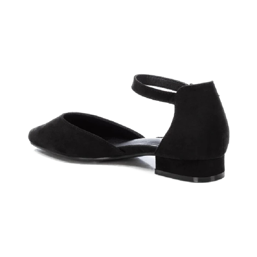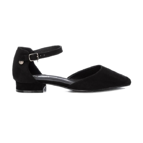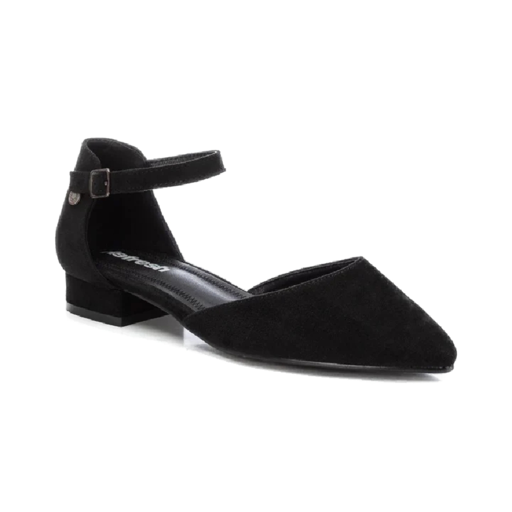 Zapato de mujer, de la marca Refresh. Fabricado en suave antelina. Modelo de punta afilada y pulsera al tobillo con hebilla y talón cerrado. Pequeño tacón de 1 cm y suela de goma antideslizante. Este modelo ha obtenido el certificado vegano por la organización mundial PETA (Organización de los derechos de los animales).