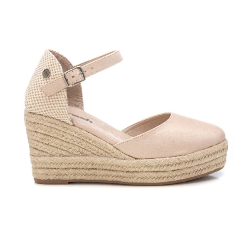 Alpargata de mujer tipo valenciana, de la marca Refresh. Fabricada en material sintético. Correa al tobillo con hebilla. Cuña de 8 cm de yute con suela de goma antideslizante. Una alpargata en color negro en tendencia ideal para esta temporada. Este modelo ha obtenido el certificado vegano por la organización mundial PETA (Organización de los derechos de los animales).