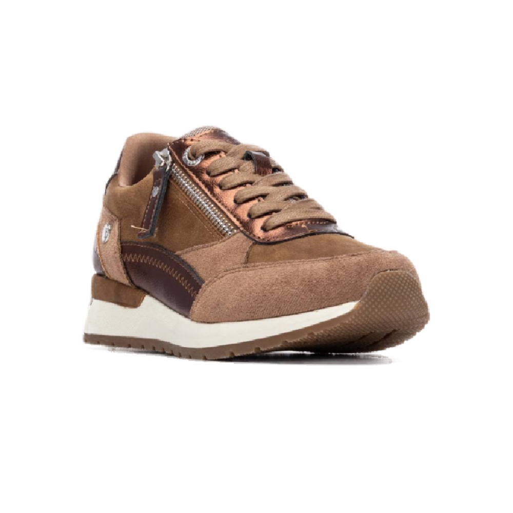 Zapatilla de mujer, de la marca Refresh. Fabricada en diferentes tejidos combinado con material que imita la piel. Cordones ajustables y cremallera lateral para una puesta más rápida. Suela de goma antideslizante. Una zapatilla perfecta para arriesgar en tus looks de esta temporada. Este modelo ha obtenido el certificado vegano por la organización mundial PETA (Organización de los derechos de los animales).
