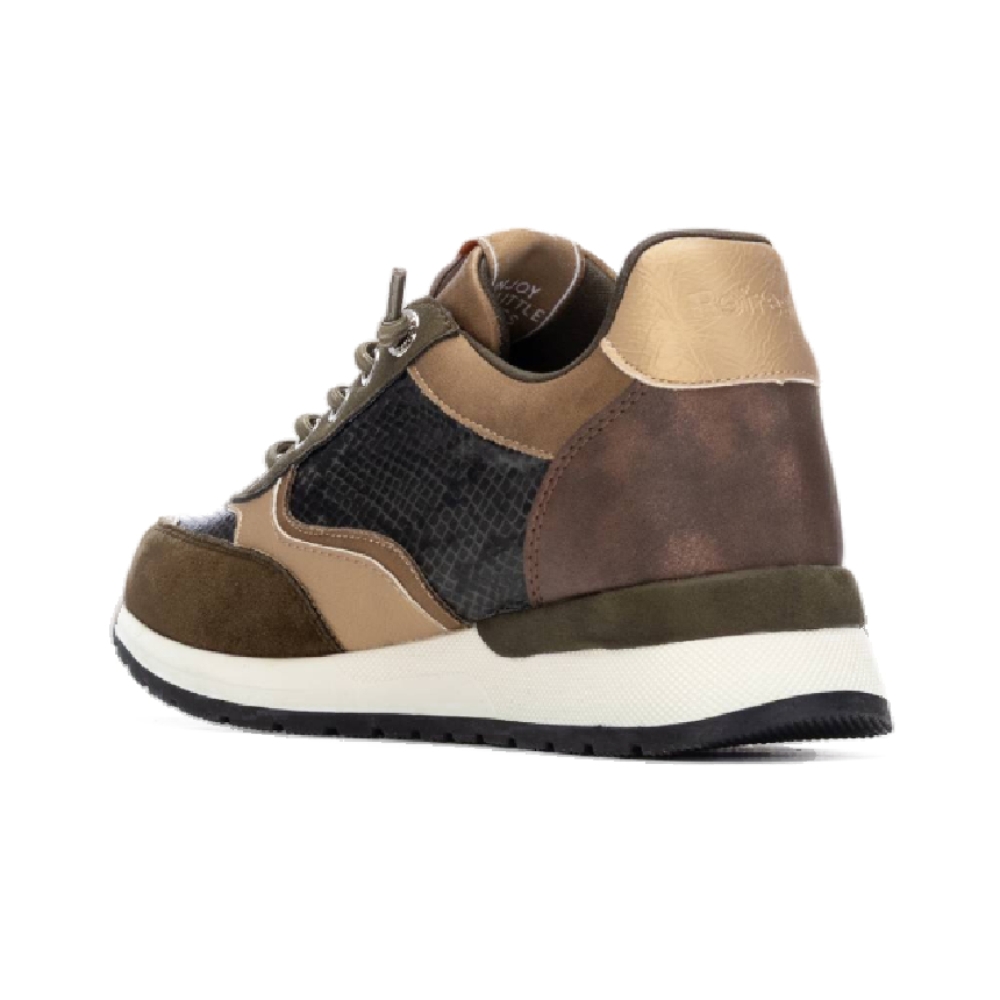 Zapatilla de mujer, de la marca Refresh. Fabricada en material que imita a la piel. Una zapatilla con una combinación de colores ideal para el día a día. Con suela de goma antideslizante. Con plantilla extraíble. Este modelo ha obtenido el certificado vegano por la organización mundial PETA (Organización de los derechos de los animales).
