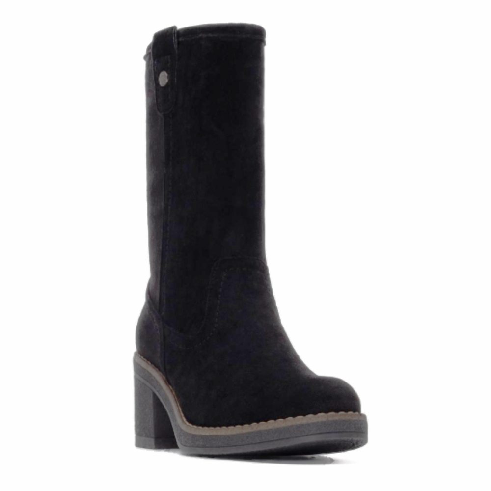 Botín de caña media de mujer, marca Refresh. Fabricado en suave antelina. Cierre mediante cremallera interior. Altura de la caña de 23 cm. Con tacón de goma de 7 cm de altura. Con plantilla extraíble. Este modelo ha obtenido el certificado vegano por la organización mundial PETA (Organización de los derechos de los animales).