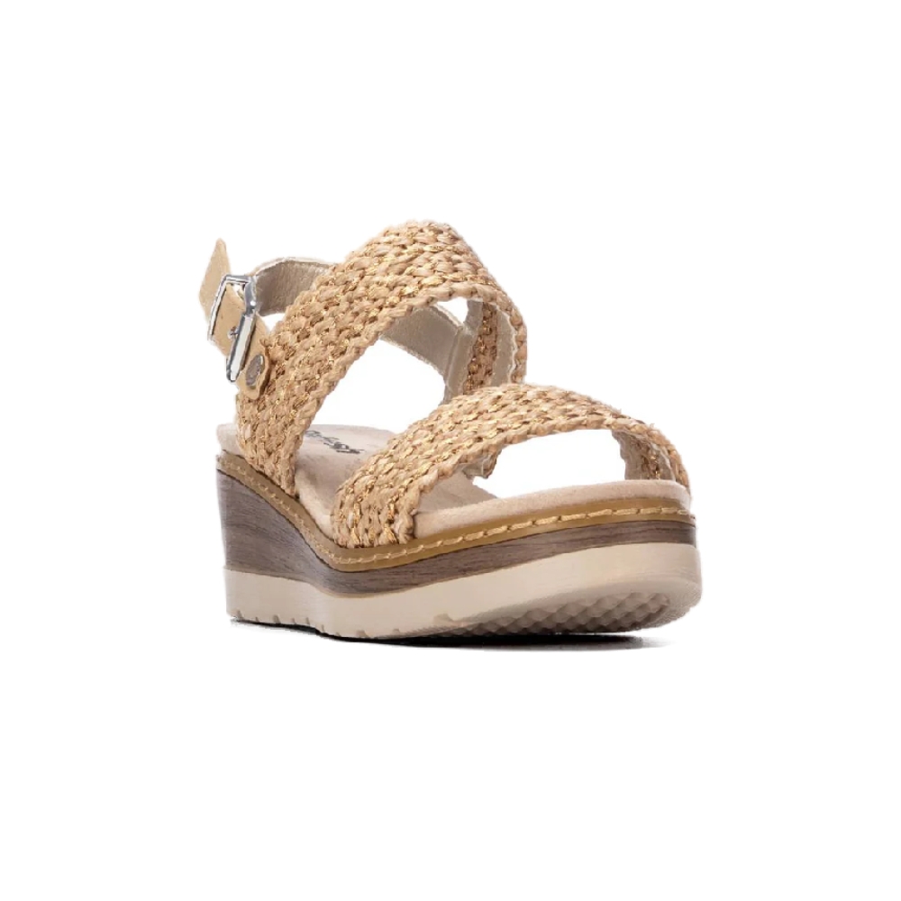 Disfruta del equilibrio perfecto entre estilo y comodidad con estas sandalias de cuña. Diseñadas con una estructura de tiras ajustables y una plantilla acolchada, son ideales para el uso diario. Su suela con acabado tipo esparto o rafia aporta un toque veraniego y artesanal, mientras que el tono beige neutro permite combinarlas fácilmente con cualquier atuendo, desde vestidos hasta vaqueros.
