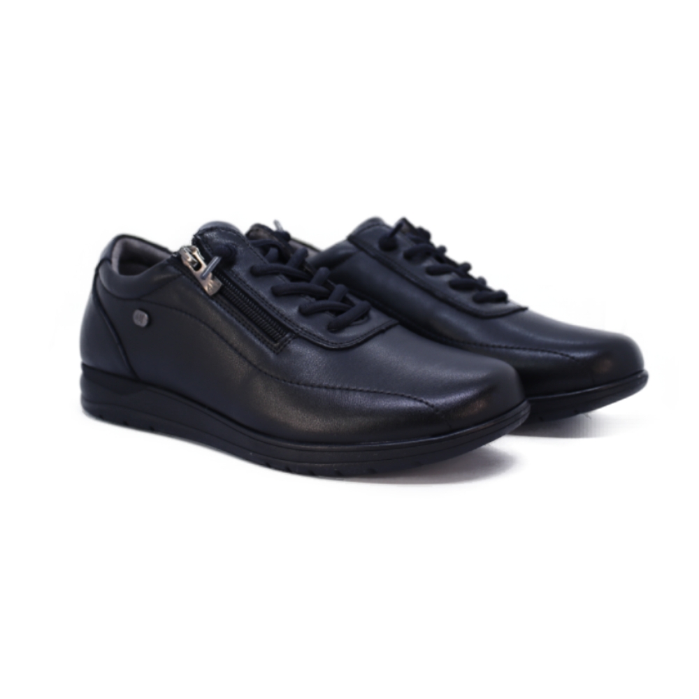 Zapatos de cordones elásticos con cremallera interna realizada en piel de gran calidad y sin costuras para que tu pie vaya cómodo. Interior de microfibra y plantilla extraíble memory foam. Ideal para el día a día, para andar y moverte por muchas horas.
