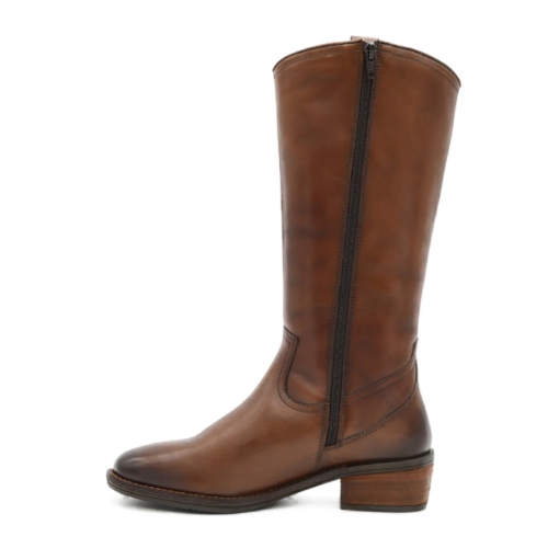 Estas botas altas de piel color cuero son la definición de elegancia atemporal con un toque western. Su diseño cowboy minimalista con caña alta y tacón bajo de madera las convierte en un fondo de armario imprescindible. El acabado cuero natural aporta calidez, versatilidad y un aire sofisticado que realza cualquier look.