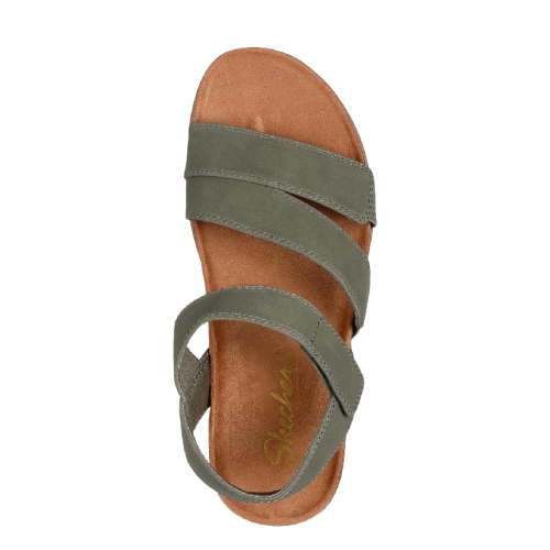 Haz que tu estilo y comodidad estén fuera de la vista con Skechers Lifted Comfort. Esta sandalia cuenta con un cuero sintético suave con una correa de talón ajustable, también detalle de suela de corcho y una plantilla acolchada Skechers Memory Foam®.