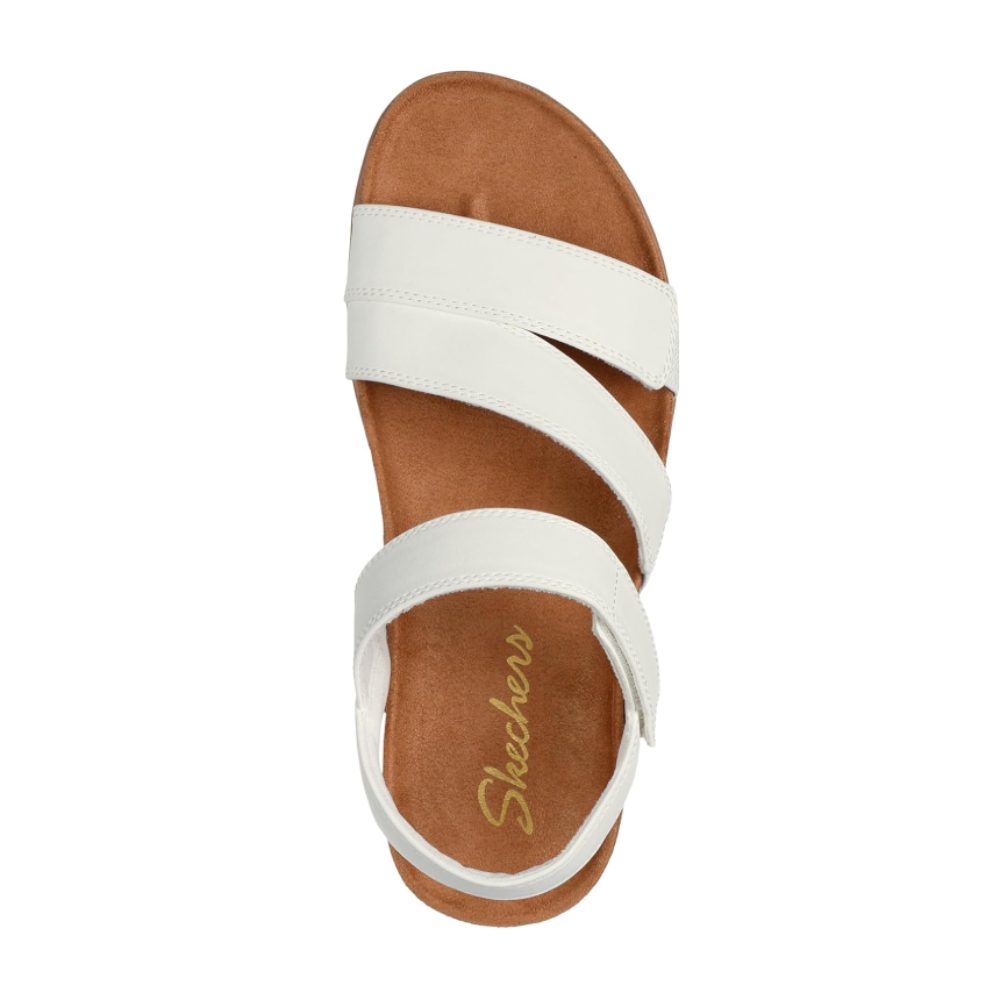 Haz que tu estilo y comodidad estén fuera de la vista con Skechers Lifted Comfort. Esta sandalia cuenta con un cuero sintético suave con una correa de talón ajustable, también detalle de suela de corcho y una plantilla acolchada Skechers Memory Foam®.
