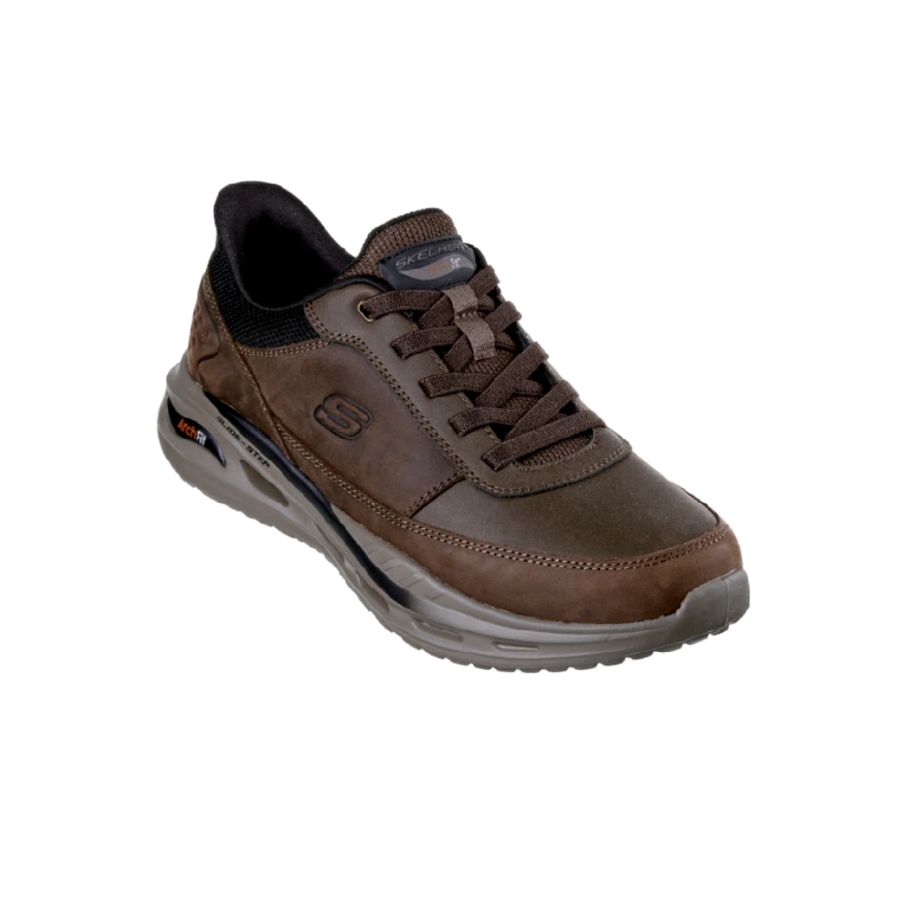 Unas zapatillas supercómodas de llevar y con un amplio soporte: así son las Skechers Hands Free Slip-ins® Relaxed Fit™: Arch Fit® Orvan - Moxley. Diseñado con nuestro sistema Heel Pillow™, este modelo EFFICIENCY™ presenta una parte superior de piel y material sintético con cordones elásticos, una plantilla Arch Fit® extraíble y una media suela Glide-Step®.