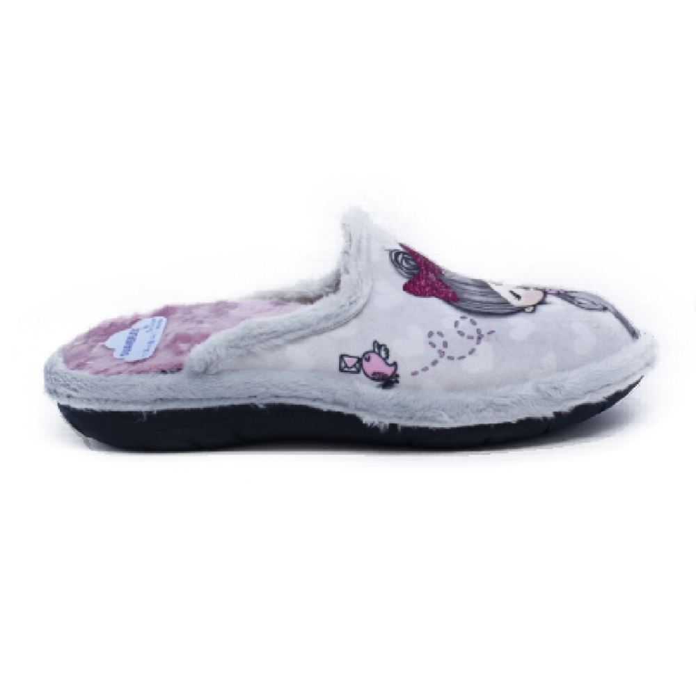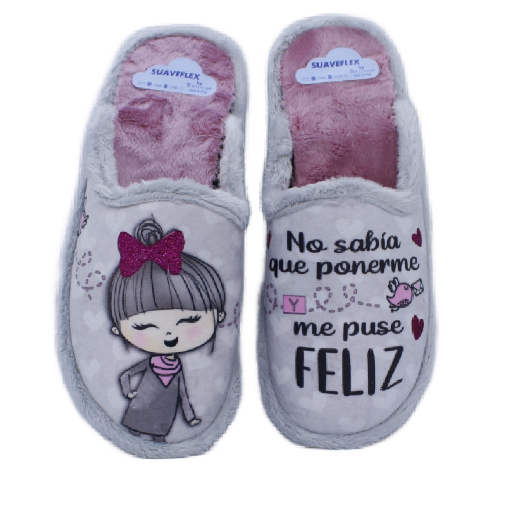 Chinela de mujer realizada en suave tejido ideales para calentar tus pies. Suela de goma antideslizante y plantilla extraible termoconfortada.