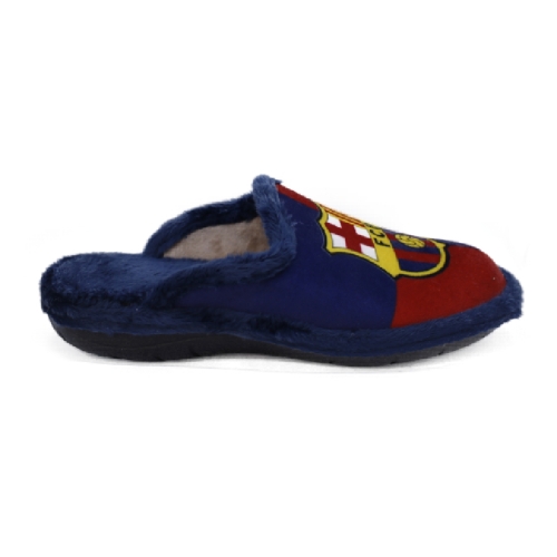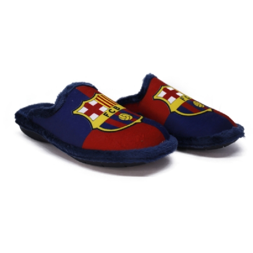 Zapatillas de casa con el escudo y los colores del Barcelona. Fabricadas en textil muy suave con pelo. Plantilla extraíble. Piso cómodo de goma muy flexible.