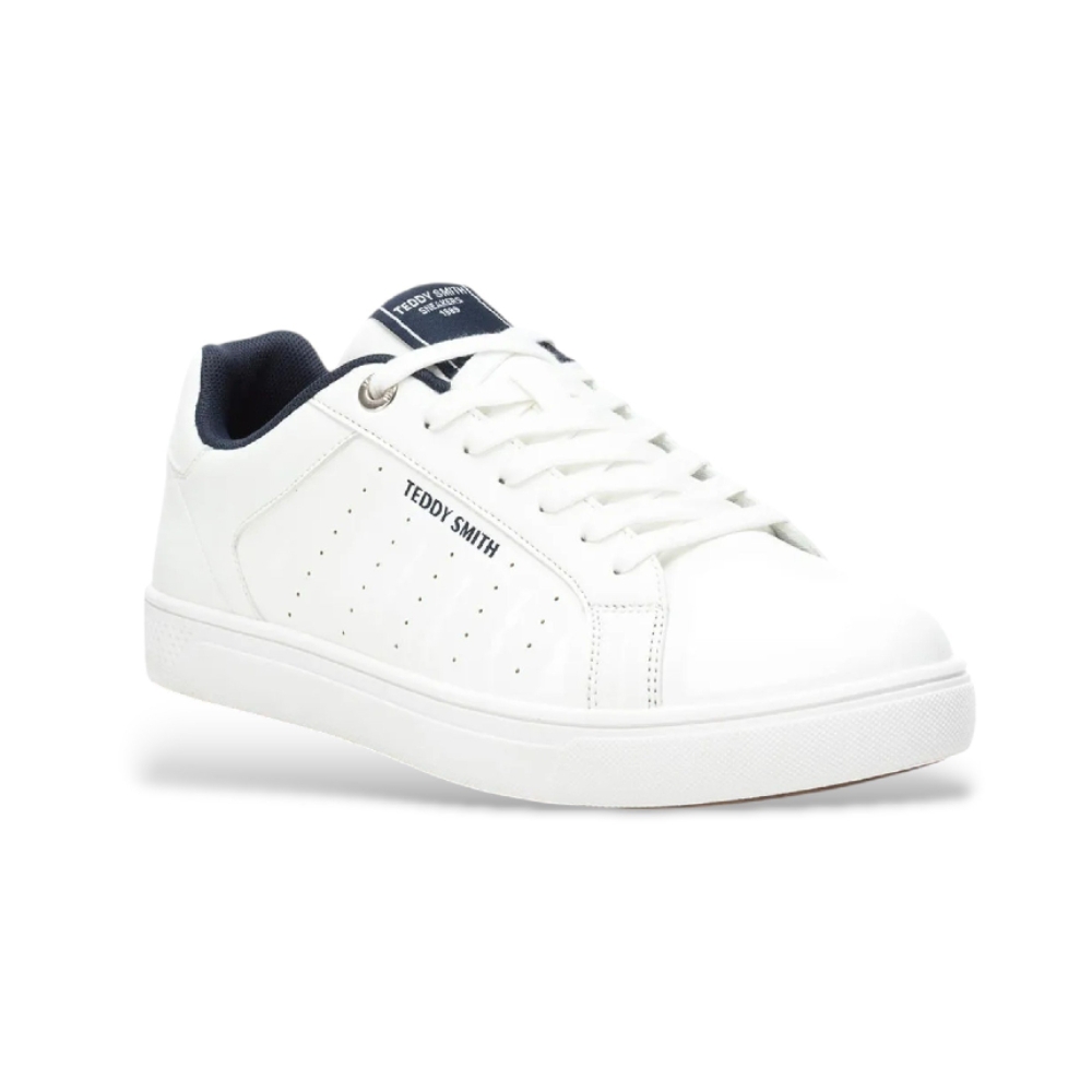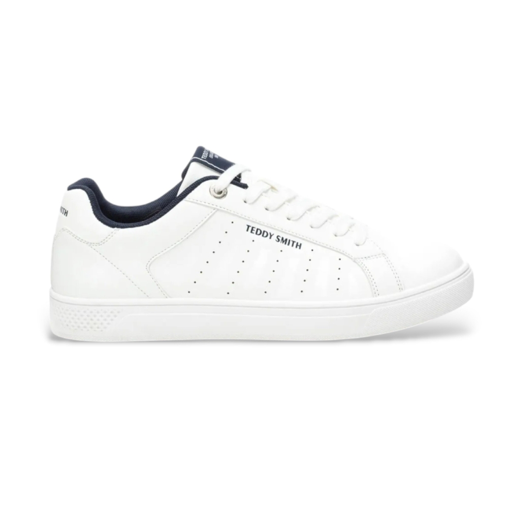 Estas zapatillas destacan por su diseño limpio y moderno en color blanco, perfecto para complementar cualquier look casual. Fabricadas con materiales veganos, ofrecen una alternativa sostenible y libre de productos de origen animal. Incorporan detalles en azul marino en el interior del talón y en la lengüeta, aportando un contraste sutil y elegante. El exterior perforado mejora la transpirabilidad, mientras que la suela de goma garantiza comodidad y durabilidad. Ideales para el día a día, estas deportivas combinan estilo, comodidad y respeto por el medio am
