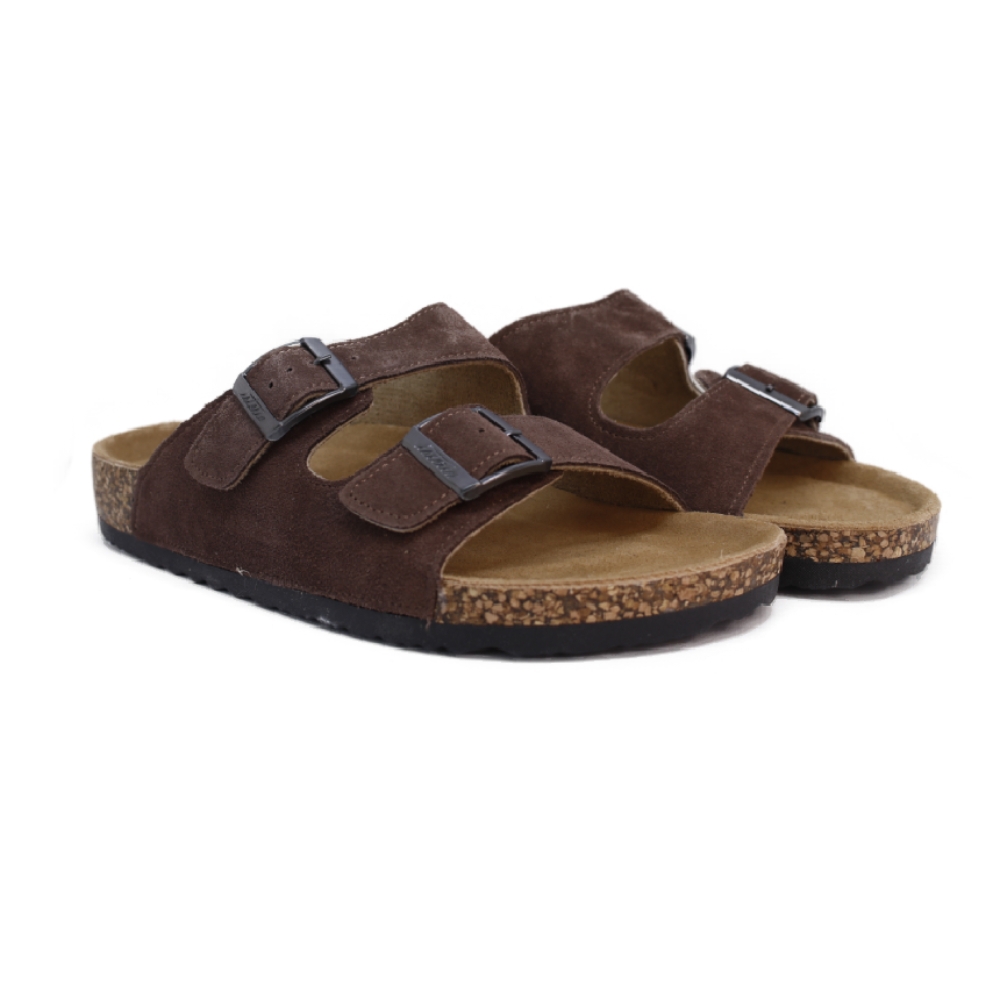 Materiales: Presenta un acabado en color Moka (marrón oscuro) con una base anatómica que imita el corcho, proporcionando confort en cada pisada.