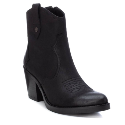 Botín cowboy de mujer, de la marca Xti. Fabricado en material que imita la piel. Cierre mediante cremallera. Tirador lateral y bordados decorativos. Tacón ancho de 7 cm con suela antideslizante. Únete a la tendencia cowboy con este modelo. Este modelo ha obtenido el certificado vegano por la organización mundial PETA (Organización de los derechos de los animales).