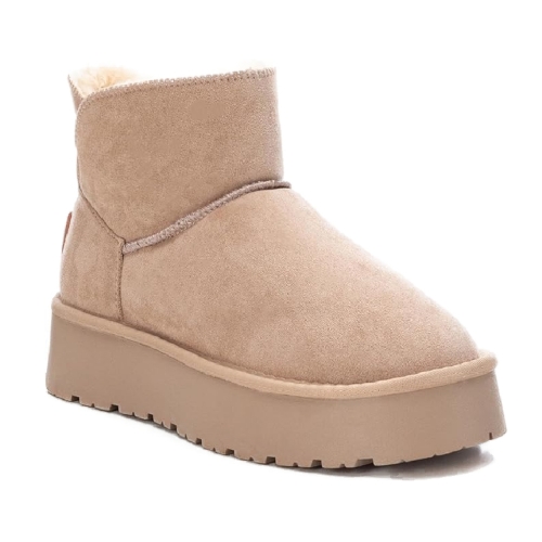 Botín de mujer, de la marca Xti. Fabricado en suave antelina con forro de pelito ideal para el frío. Lleva este modelo en casa o en la calle. Doble piso con suela antideslizante. Este modelo ha obtenido el certificado vegano por la organización mundial PETA (Organización de los derechos de los animales).