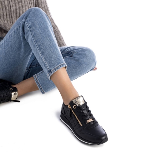 Zapatilla de mujer con cordones, de la marca Xti. Fabricada en material que imita a la piel. Cierre mediante cremallera con cordones ajustables y suela de goma antideslizante. Una zapatilla de tendencia que no podrá faltar en tu armario esta temporada. Este modelo ha obtenido el certificado vegano por la organización mundial PETA (Organización de los derechos de los animales).