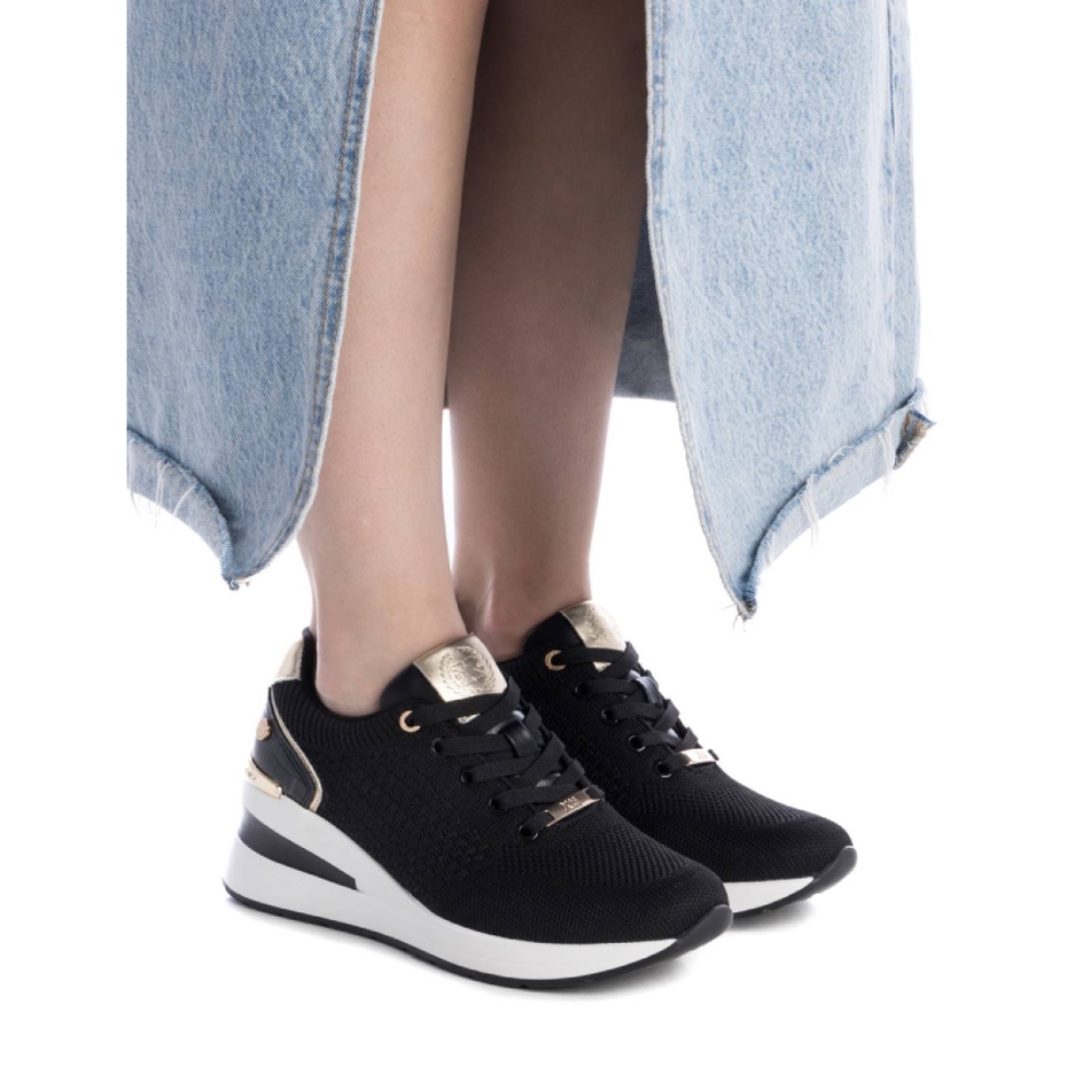 Potencia tu figura y tu estilo urbano con esta zapatilla deportiva de XTI. Su diseño combina el confort del knit con una silueta estilizada gracias a su cuña de 6 cm, perfecta para un look moderno y sofisticado.