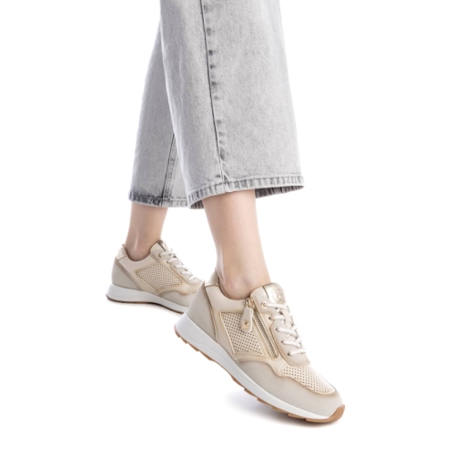 Zapatilla de mujer, de la marca Xti. Fabricada en material que imita la piel. Material troquelado en el lateral y en la puntera del modelo. Cierre mediante cremallera en el lateral para facilitar ponértelas. Detalle metalizado en el talón. Con plantilla extraíble. Este modelo ha obtenido el certificado vegano por la organización mundial PETA (Organización de los derechos de los animales).
