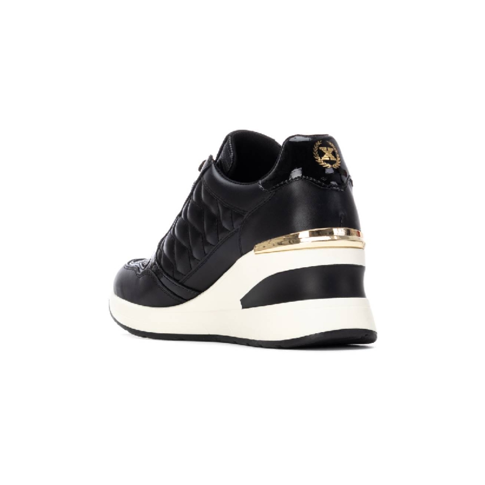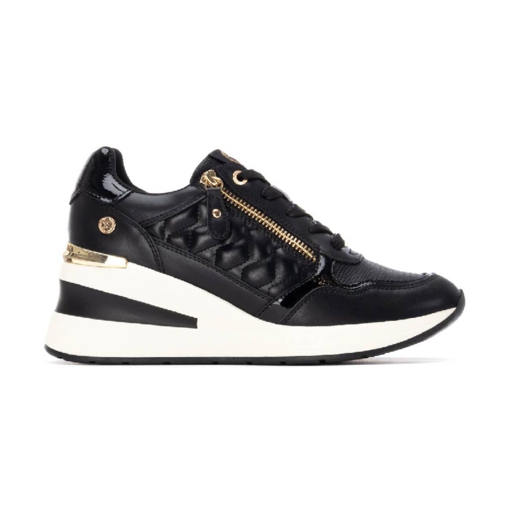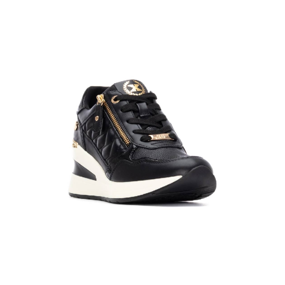 Zapatilla de mujer de la marca Xti. Fabricada en material que imita la piel. Con cierre de cremallera para una fácil y cómoda puesta. Con detalle cosido lateral. Suela con cuña de goma antideslizante. Modelo esencial básico para tu armario. Este modelo ha obtenido el certificado vegano por la organización mundial PETA (Organización de los derechos de los animales).