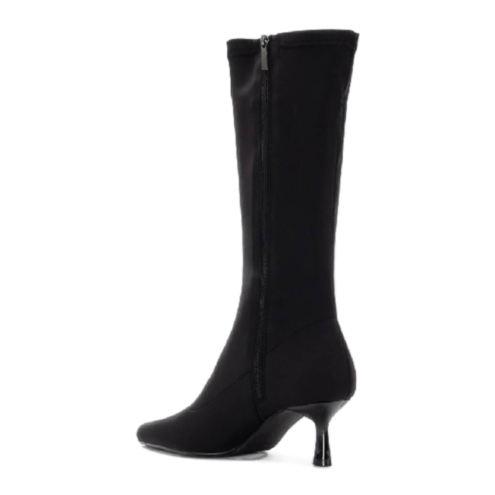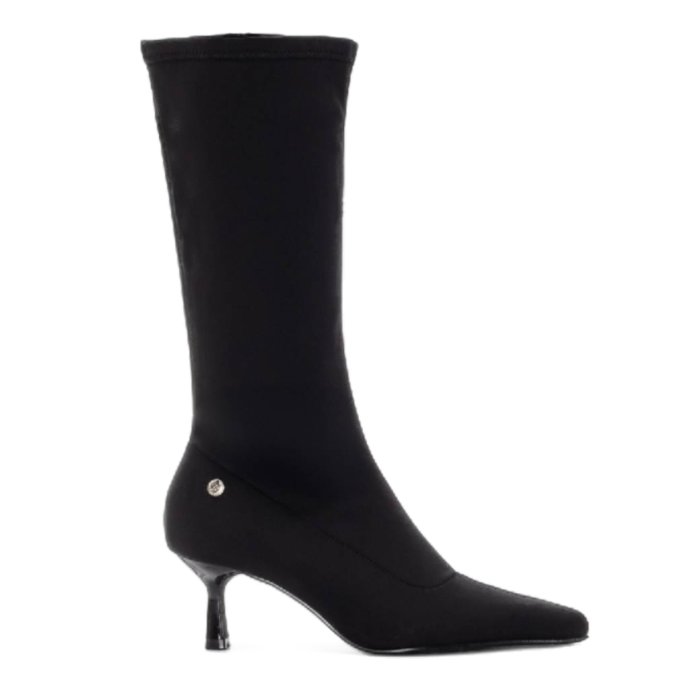 Bota de mujer, de la marca Xti. Fabricada en suave material. Esta bota cuenta con un tacón estilo aguja de 6 cm, que aporta un toque elegante y sofisticado a cualquier look. Su diseño elástico se adapta perfectamente a la pierna, proporcionando un ajuste cómodo y estilizado. Ideal para ocasiones formales o para darle un toque de distinción a tu estilo diario, esta bota también cuenta con suela antideslizante para mayor seguridad al caminar. Este modelo ha obtenido el certificado vegano por la organización mundial PETA (Organización de los derechos de los animales).