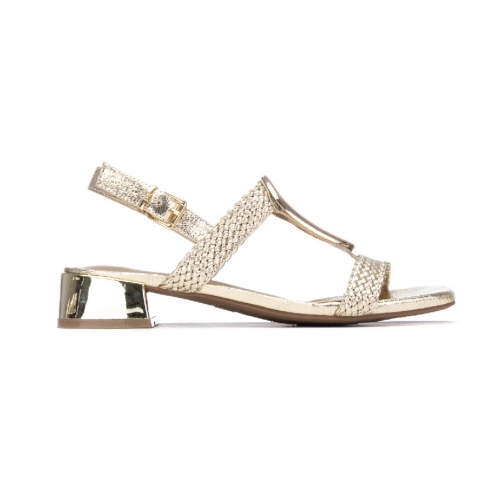 Tacón Geométrico Confortable: Incorpora un tacón bajo de forma cuadrada con un llamativo acabado metalizado en color oro. Este diseño no solo es tendencia, sino que proporciona una base estable y cómoda para aguantar horas de pie o en celebraciones.