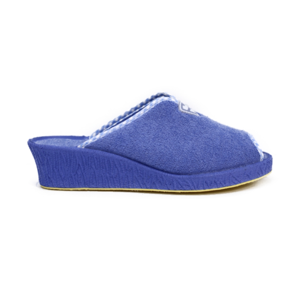 Disfruta de la máxima comodidad en casa con estas zapatillas de la marca Z.Mavil. Diseñadas específicamente para la temporada de primavera-verano, cuentan con un diseño de punta abierta que permite una excelente transpiración. Su cuña proporciona el soporte ideal para el pie, mientras que el acabado en rizo o toalla de color azul ofrece una textura suave y fresca al tacto. Son ligeras y están fabricadas con materiales de calidad, siendo un producto representativo del calzado hecho en España.