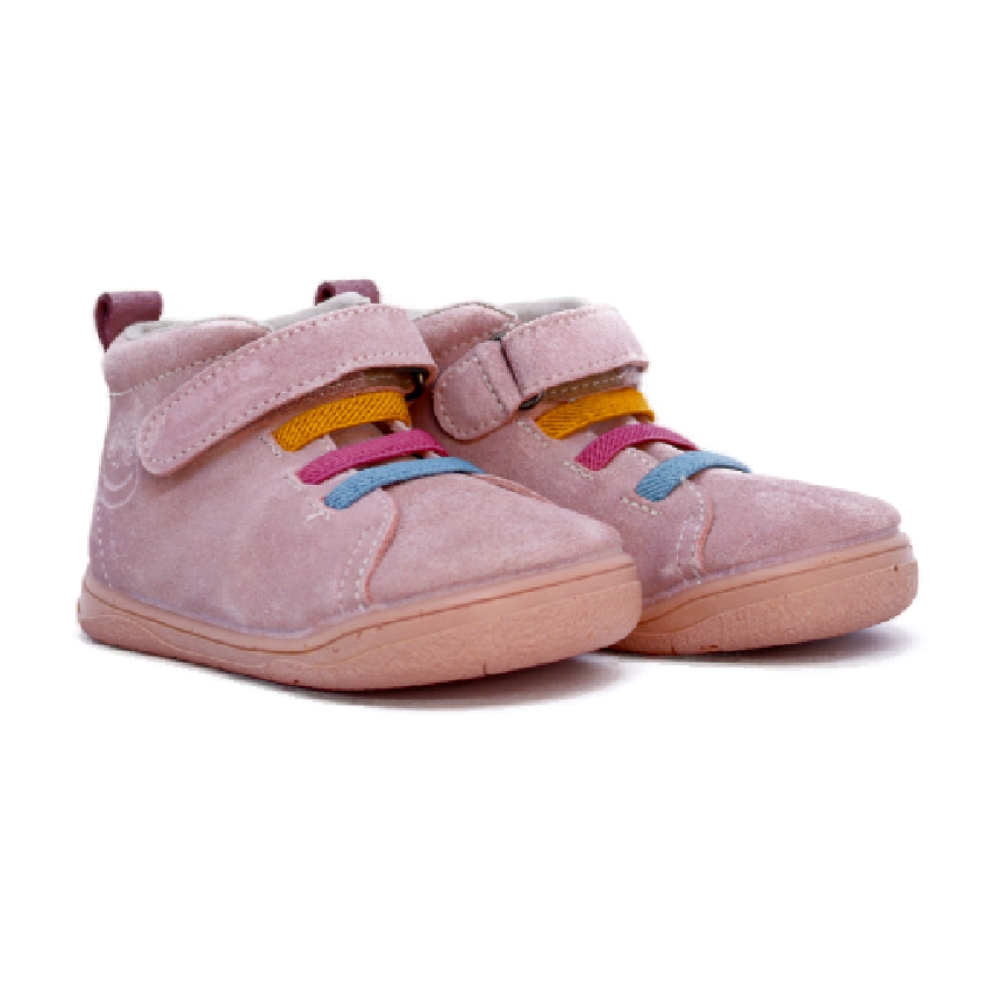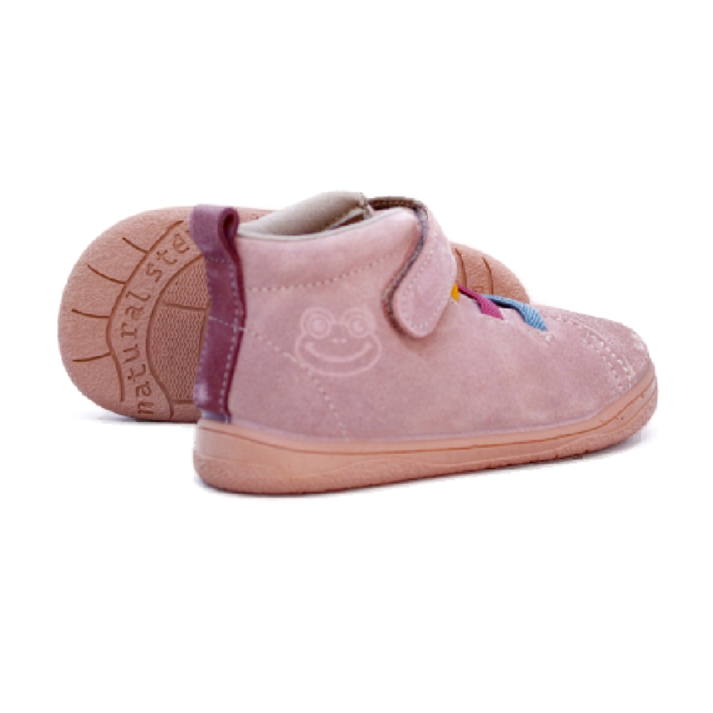 Fabricadas en piel suave de alta calidad, cuentan con gomas elásticas en el empeine que facilitan el calce y una tira adhesiva ajustable para mayor sujeción. Su diseño barefoot con drop 0 favorece la postura natural y la libertad de movimiento, mientras que la plantilla extraíble permite una mejor higiene y adaptación a las necesidades de cada niño.
