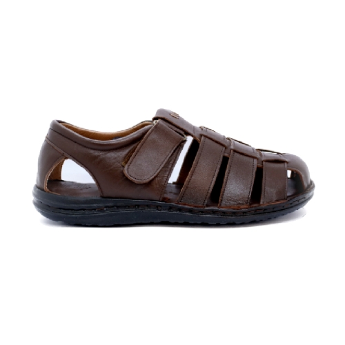 Sandalia cangrejera piel  marrón hombre. Se ajusta mediante Tira adhesiva. Planta de piel acolchada. Suela ligera de poliuretano flexible y antideslizante.