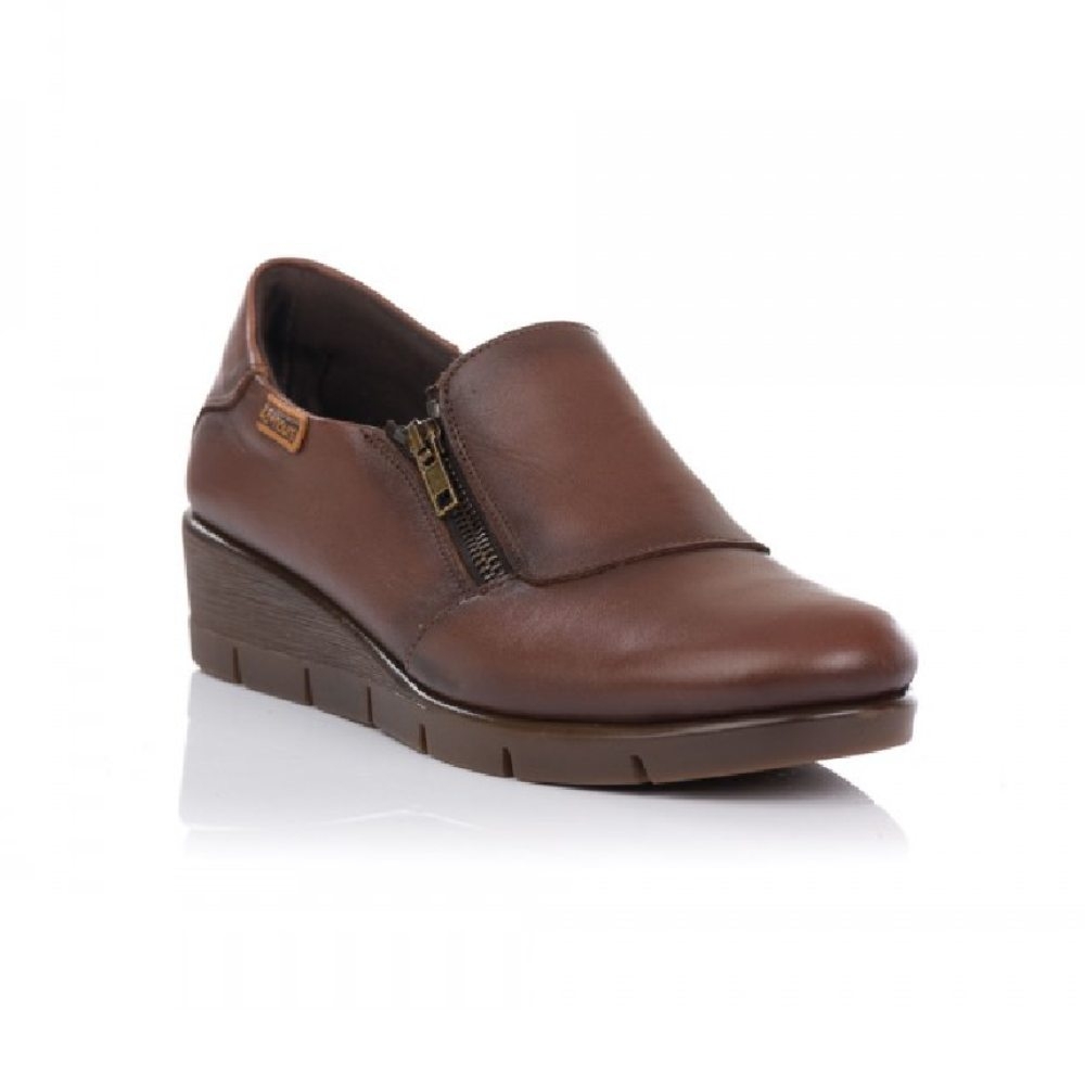 Zapato de mujer realizado en suave piel de primera calidad sin costura interiores. Interior realizado en microfibra termoconfortada que aisla garantizado la transpiración del piel. Suela de crepé antideslizante. Cierre con cremallera lateral.