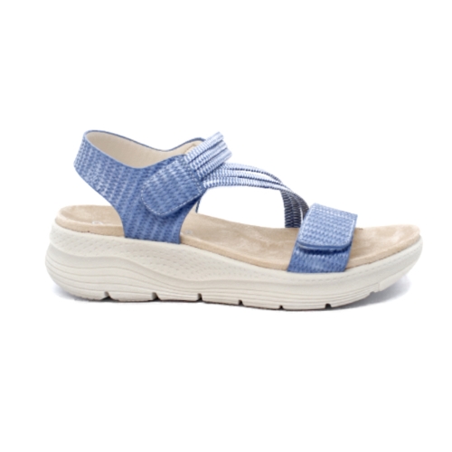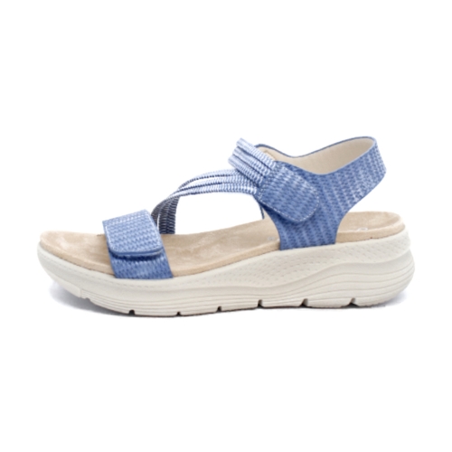 Sandalia de mujer hecha de cincha elástica de alta calidad que se estira y se ajusta a tu pie y a sus dos tiras adherentes. Entresuela acolchada de espuma EVA con soporte de arco ergonómico, absorbe el impacto y proporciona un ajuste ultracómodo