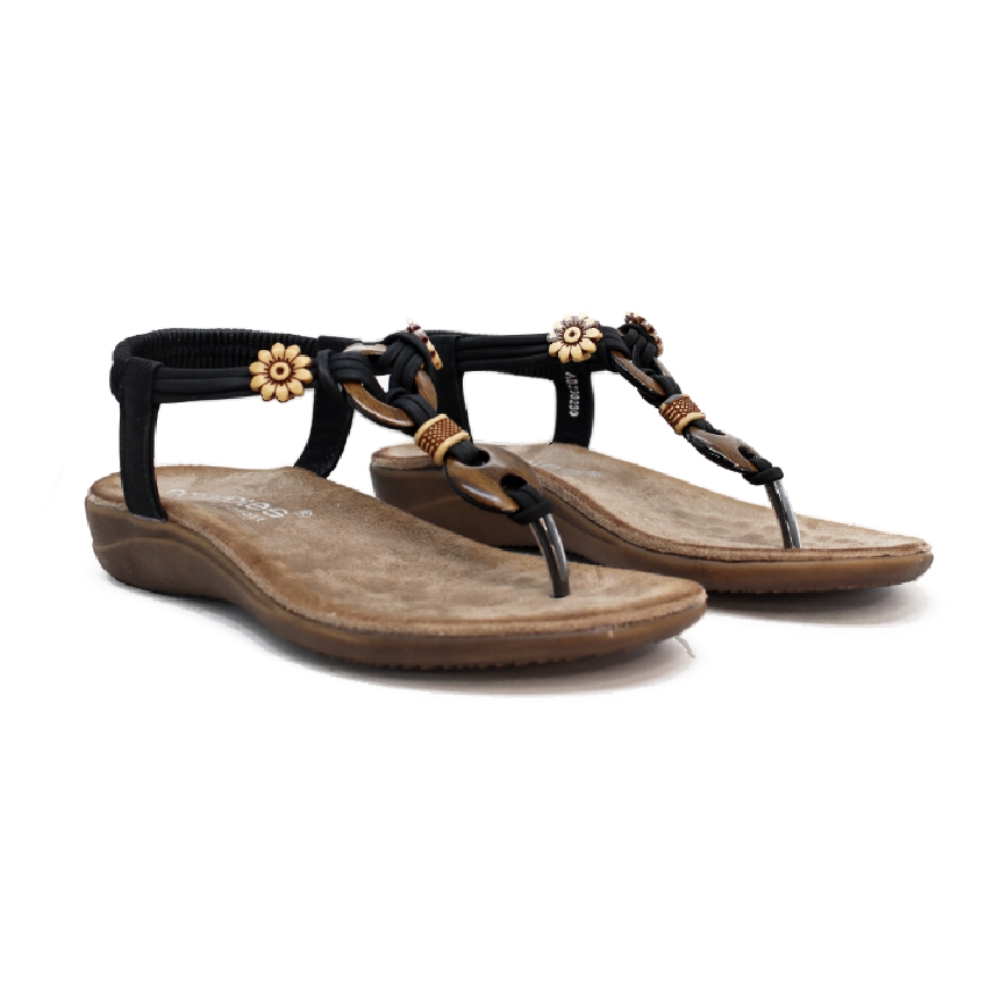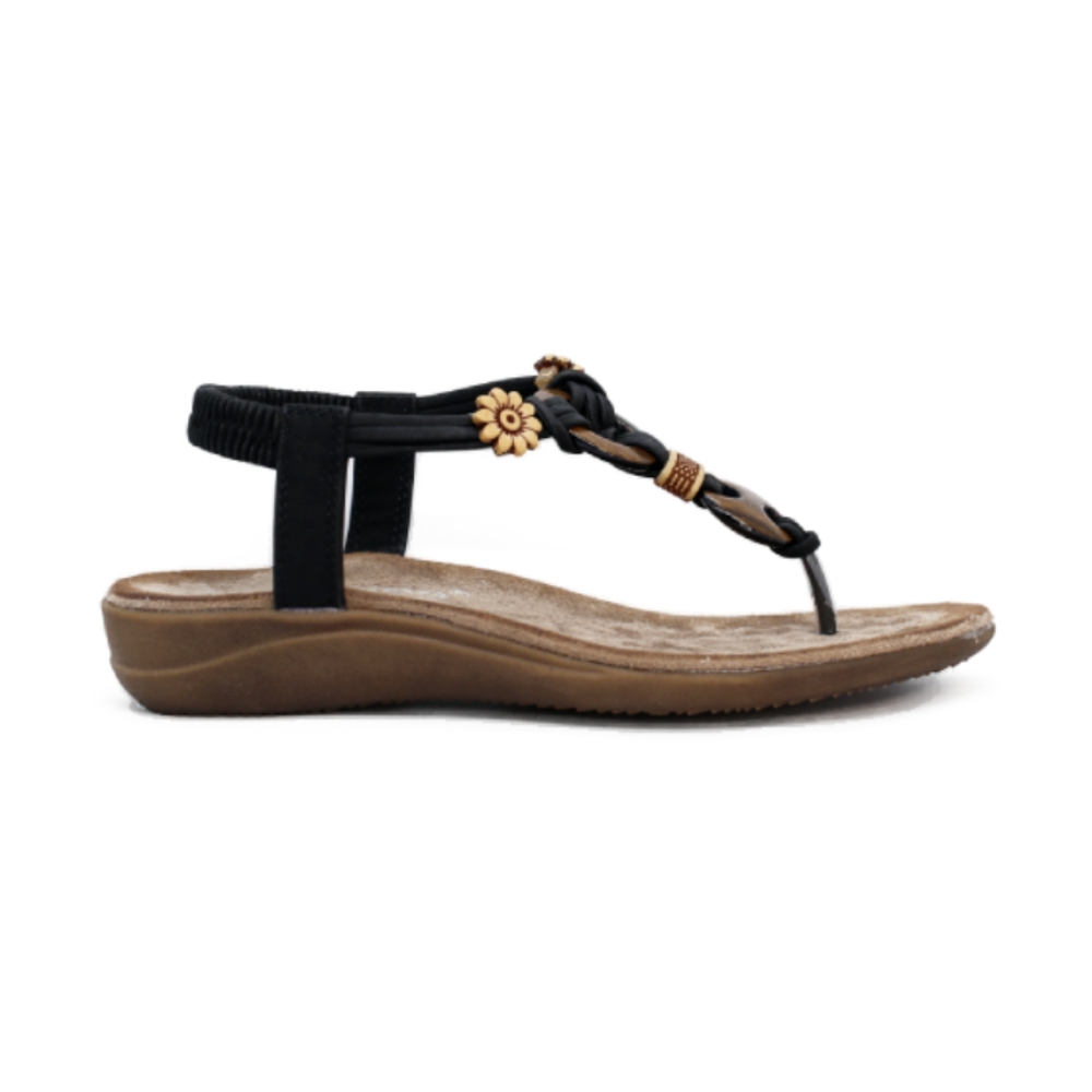 Diseño Ergonómico: Su tira central decorativa estiliza el pie, mientras que su estructura respeta la forma natural de la pisada.