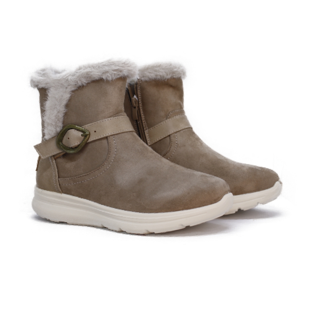 Confeccionados en un material de apariencia ante o nobuck en un versátil color gris topo o taupe, son muy suaves al tacto.